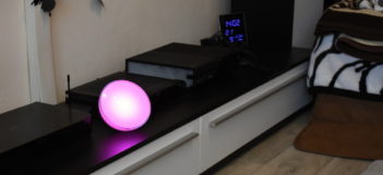 Inštalované zariadenia – Lampa Philips Hue Go, dverový a pohybový senzor, centrálna jednotka na zapojenie do systému Smarthome a Inteligentná zásuvka