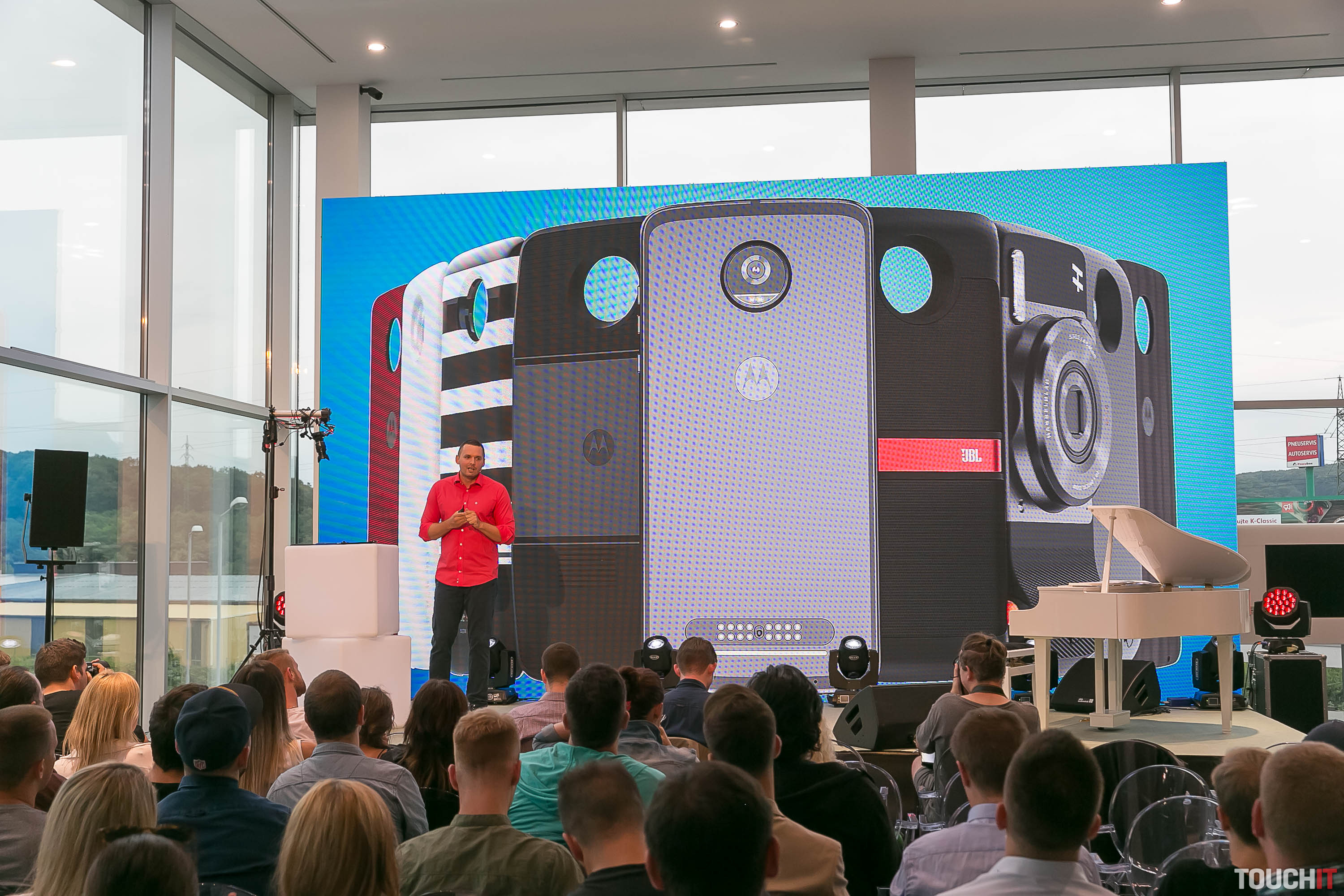 A to oceňujeme. Pozrite sa, ako dokázal prezentovať nový telefón Moto Z2 Play, ale aj nové moduly o pol desiatej večer. Hudobným hosťom bol klavirista Richard Rikkon a tiež Lina Mayer, ktorá vystupovala ako Sia.