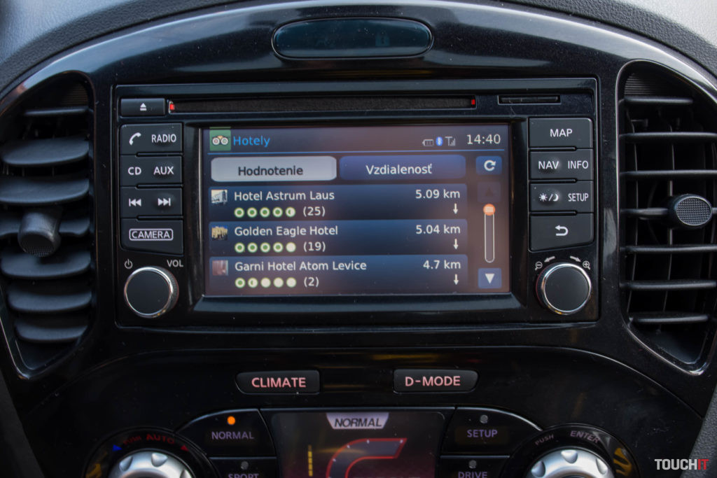 Nissan Juka sa dá prepojiť s mobilným telefónom a pomocou špeciálnej aplikácie máte k dispozícii aj funkcie ako je TripAdvisor alebo online hľadanie na Google či správy z Eurosport.
