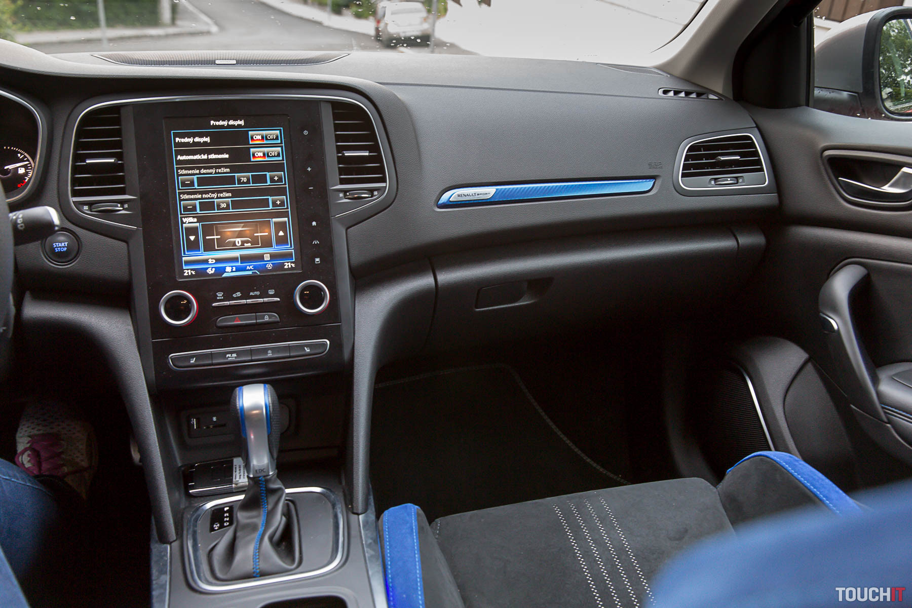 V našom teste sme dosiahli spotrebu okolo 6,5 l/100 km, jazdili sme kombinované trate s diaľničnými sekciami a mestským cyklom. Zrýchlenie z 0 na 100 km/h sme namerali za 7,3 sekundy. Základom IT výbavy je veľký 8,7-palcový tablet, s dotykovým displejom. Na ňom nastavujete prvky ako je napr. režim prevádzky auta, podsvietenie, klimatizácia a pod. Mechanické prvky sú na hlasitosť multimediálneho systému a nastavenie teploty v kabíne. Renault Mégane GT bol v našom prípade vybavený dvojzónovou automatickou klimatizáciou, dobre si poradil aj s júlovými horúčavami.