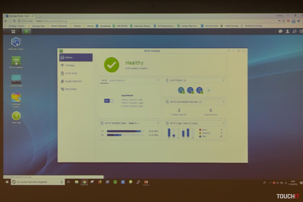 Synology však prichádza s celom novým prístupom ako poskytnúť zákazníkom čo lepší používateľský zážitok pre Wi-Fi a domáci networking. Pre túto oblasť vytvorili v Synology úplne nové používateľské rozhranie, ktoré sa podobá na prostredie Disk Station Manager. Jeho názov je Synology Router Manager. S týmto rozhraním si používatelia, ktorí už poznajú Disk Station Manager môžu veľmi jednoducho osvojiť nový program a jednoducho dosiahnuť, aby bola celá bezdrôtová sieť bola bezpečná. Synology tak v Hannoveri ukázalo jednak nové mesh zariadenia ako aj nový softvér, ktorý bude uvoľnený spolu s hardvérom. Jeho označenie je Synology Router Manager 1.2. V Synology Router Manager nájdeme tri celkom nové aplikácie. Prvou z nich je Wi-Fi Connect. Je to aplikácia, ktorá vám poskytne prehľad o všetkých mesh zariadeniach vo vašej sieti. Na prvý pohľad tak vidíte, že vaša sieť je zdravá a máte aj jednoduchú možnosť ako ju aktivovať a deaktivovať. Vidíte aj všetky Wi-Fi body, ktoré ste už nainštalovali , tiež vidíte hlavný router. Tiež máte na prvý pohľad prehľad o prenosovej rýchlosti, ktoré mesh zariadenia práve generujú.