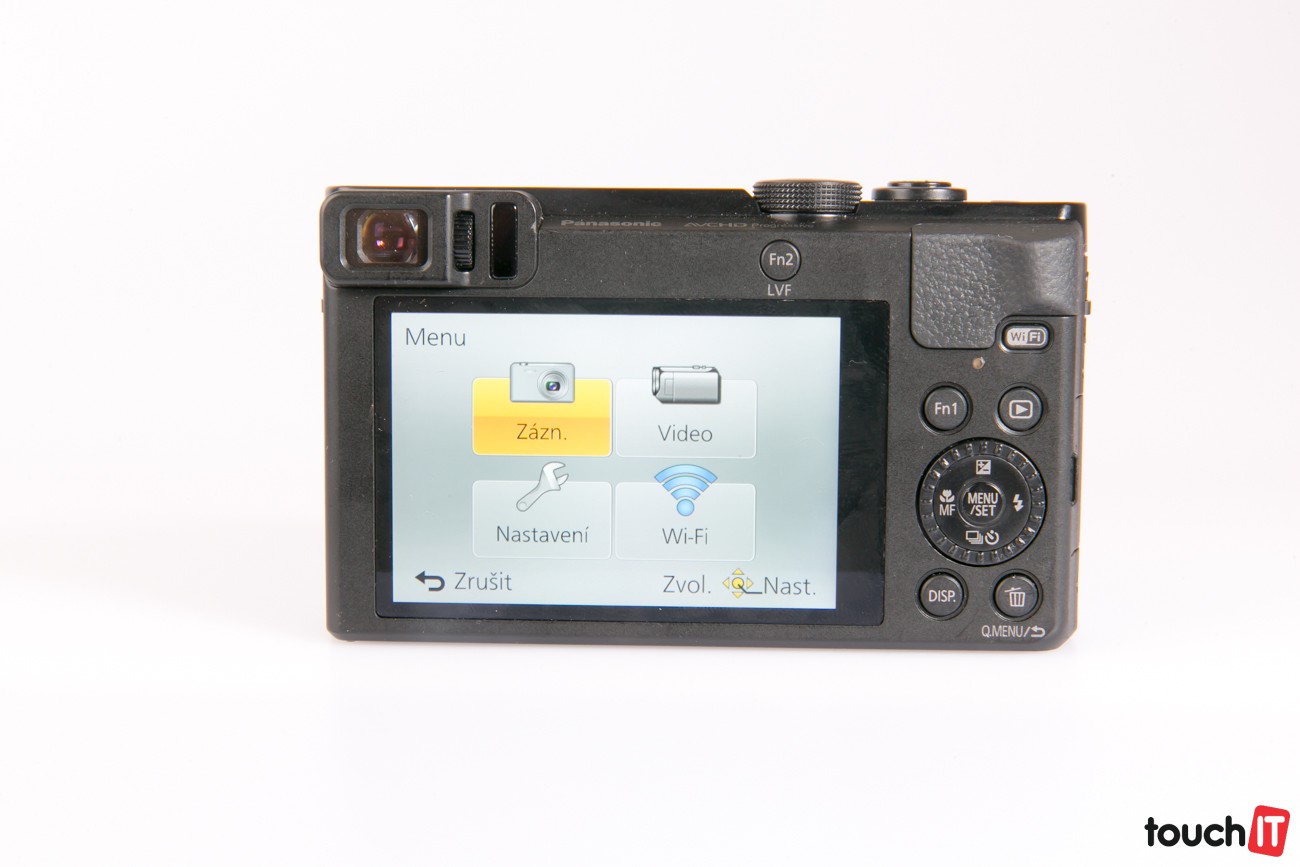 1920 × 1080) so stereo zvukom/50 fps. Zabudovaný je stereofónny mikrofón, externý mikrofón alebo slúchadlá nie je možné pripojiť. Záznam sa ukladá na SD kartu. Fotoaparát má dve používateľsky nastaviteľné tlačidlá, my sme ich využili na voľbu zaostrovacích bodov. To vás zbaví nutnosti prechádzať do menu na voľbu tejto funkcie.