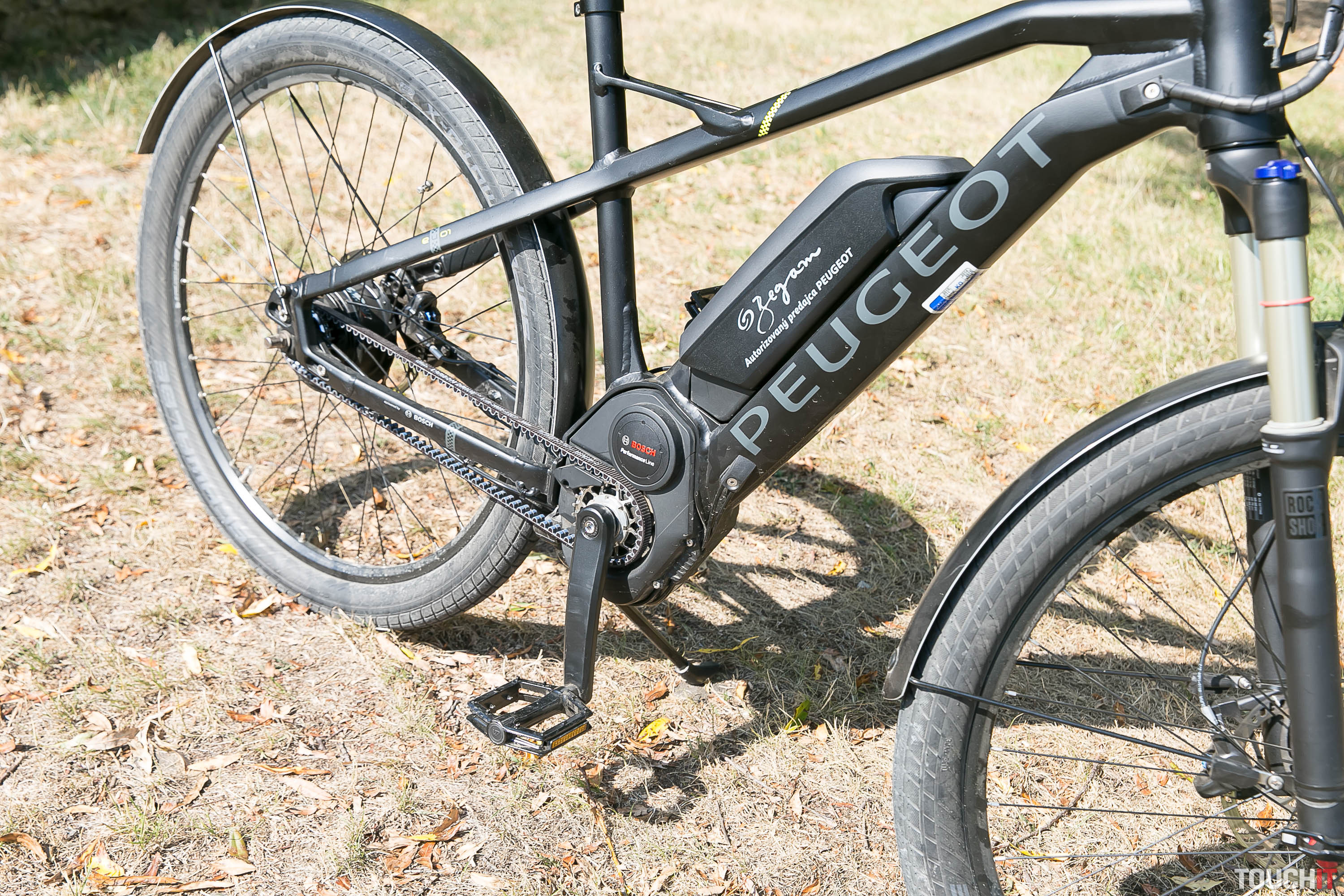 Peugeot eUO1s má plynulú prehadzovačkou, ktorú ovládate otáčaním pravej rukoväte. Od zapnutia pohonu svietia predné aj zadné svetlo trvalo, bicykel má aj podsvietenie ŠPZky a tiež brzdové svetlo.