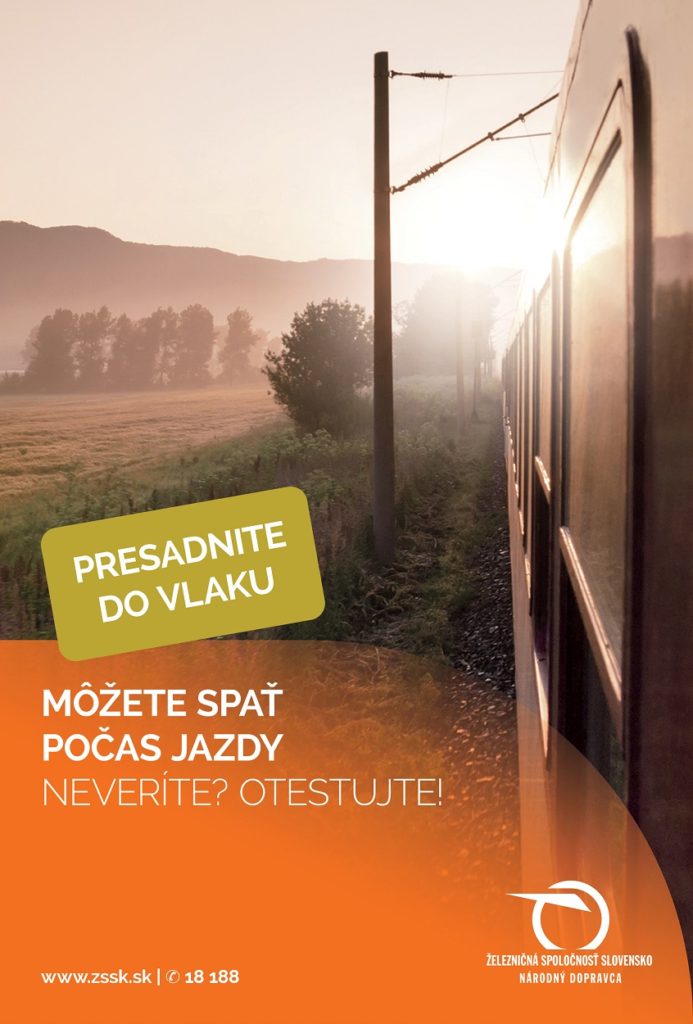 „Ak cestujete vlakom, ste pánom svojho času. Nemusíte dávať pozor na cestu ani na auto stojace v zápche pred vami. Môžete esemeskovať či hrať sa s telefónom a nemusíte sa pritom obávať o vašu bezpečnosť. Ak sa ozve ranná káva, nemusíte zastavovať – odskočíte si priamo vo vlaku. Alebo môžete s rannou kávou počkať a cestou si ešte chvíľu zdriemnuť. Tým sa zoznam výhod stále nekončí. Čas strávený vo vlaku môžete venovať práci alebo zábave – či už sa cez bezplatnú Wi-Fi pripojíte na internet vo vlaku, alebo si vystačíte napríklad s vlastnou knihou, alebo filmom v počítači. Takýto spôsob cestovania však neprináša výhody iba pre vás osobne. Ak presadnete do vlaku, chránite prírodu a prispievate k čistejšiemu životnému prostrediu a prázdnejším cestám,“ predstavuje posolstvo druhej fázy kampane Marek Lukoťka, vedúci oddelenia marketingu a obchodu ZSSK a dodáva: „Táto časť našej kampane potrvá aktuálne do 5. decembra, no v roku 2018 sa ku komunikácii