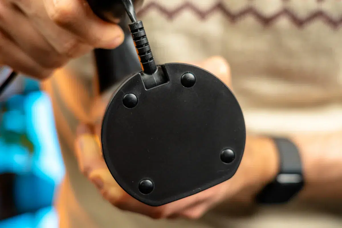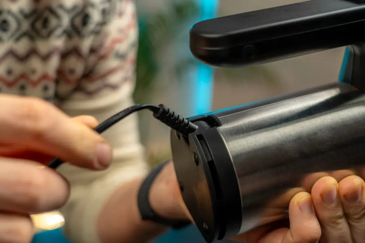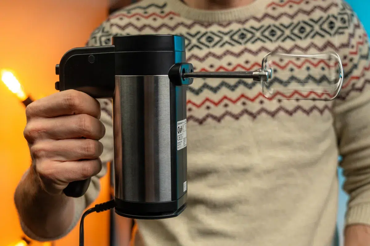 Na voľbu rýchlosti slúži posuvný prepínač a stlačením turbo tlačidla prepnete mixér do maximálnych otáčok v každom rýchlostnom režime. Samotné zariadenie sa vďaka ergonomickej rukoväti dobre drží, šnúra s dĺžkou 1,5 metra umožňuje pohodlnú manipuláciu, aj keď nemáte zásuvku blízko pracovnej dosky. Navyše jej zakončenie v tele mixéra je ukončené flexibilný kĺbom, čo bráni zalomeniu kábla.