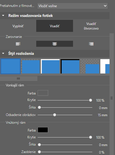 Každá fotografia môže mať nastavený vonkajší a vnútorný rám, vrátane farby krytia alebo napríklad zaoblenia. Takisto definujete odsadenie, ak si na 1 stranu poukladáte viacero obrázkov.