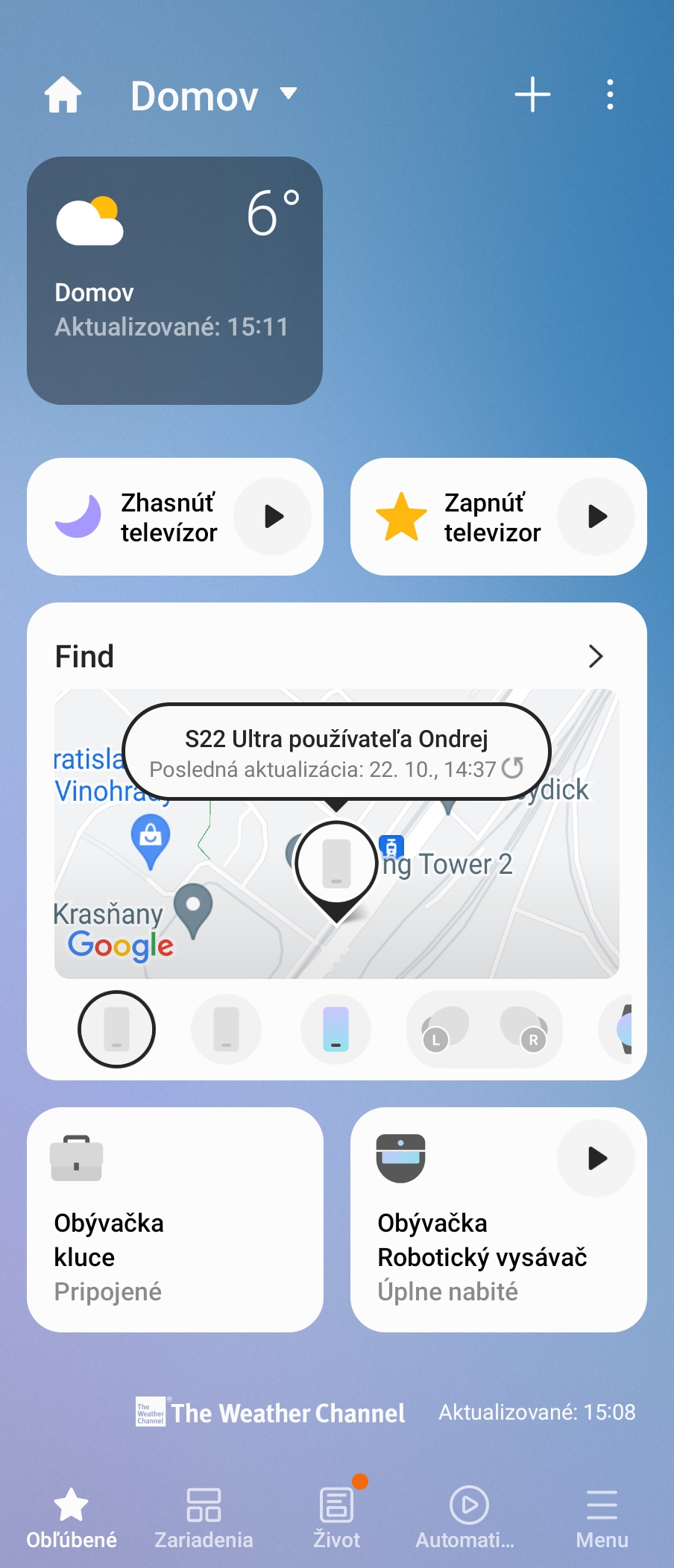 Rovnako používame pripojenie hodiniek Galaxy Watch5 Pro do systému SmartThings ako aj slúchadiel Galaxy Buds2 Pro.