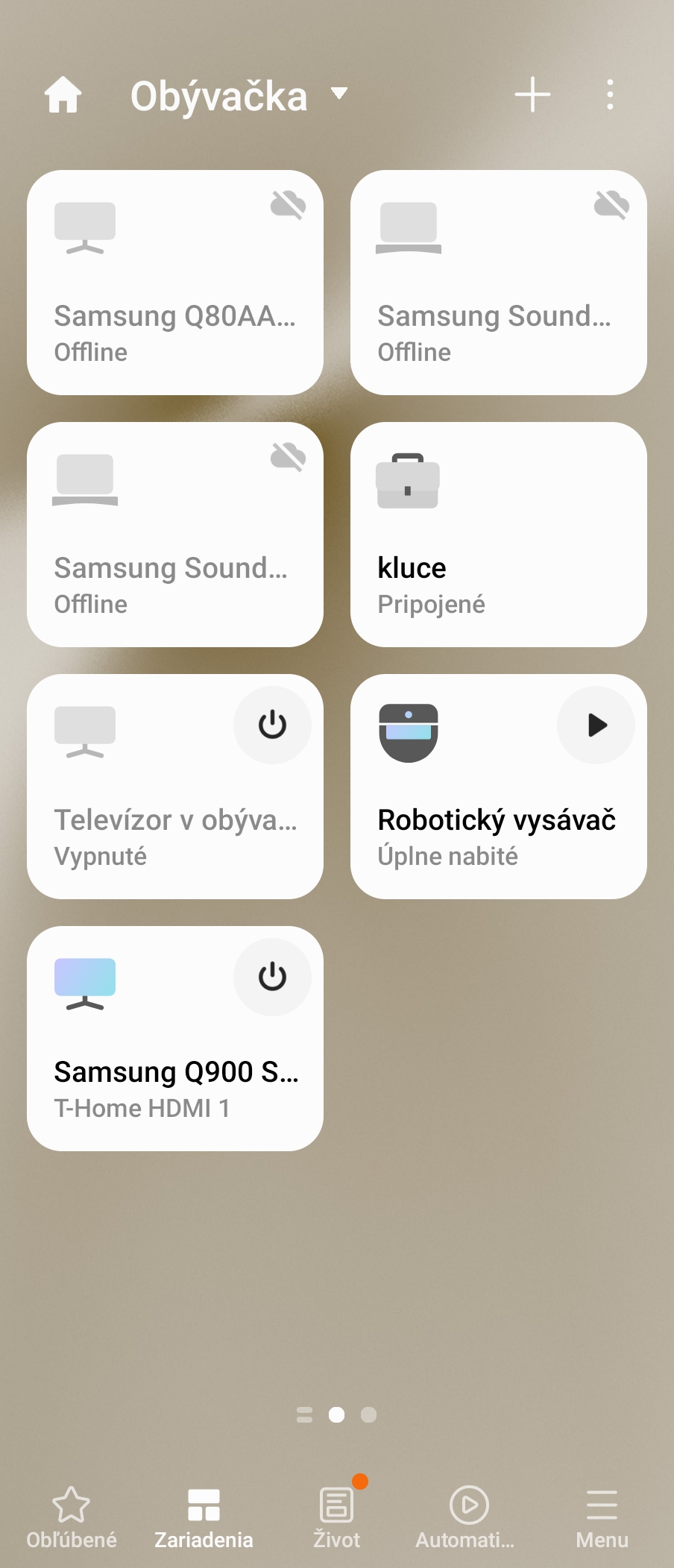 Jednotlivé zariadenia sa do SmartThings dostanú tak, že sa automaticky rozpoznajú vyhľadaním v blízkom okolí, prípadne použijete nasnímanie čiarového kódu, resp. zadáte nastavovací kód, ktorý nájdete na obale alebo na tele zariadenia. V zozname zariadení nájdete rôzne položky – napr. kŕmidlo na domáce zvieratá Petkit, zvlhčovač Miro SmartHome, inteligentný zvonček Ring a podobne.
