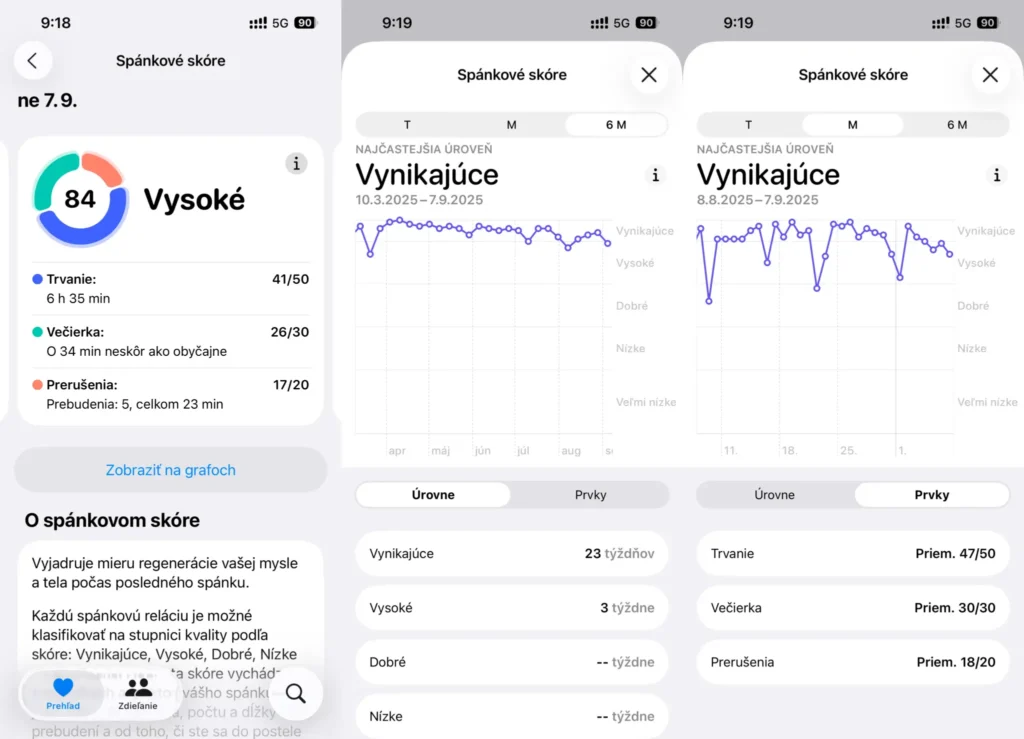 Spánkové skóre si môžete skontrolovať cez aplikáciu Zdravie v iPhone a aj priamo v Apple Watch. Netreba nič aktivovať, funkcia sa zapne automaticky. V aplikácii Zdravie nájdete spánkové skóre aj pre spánky, ktoré ste zaznamenali v minulosti.