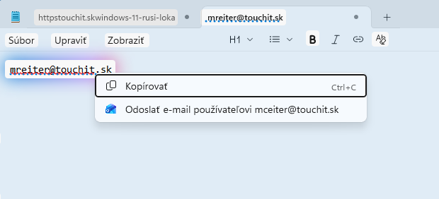 Po novom umožňuje reagovať na viacero podkladových informácií. Napríklad pri označení emailovej adresy ju môžete nielen skopírovať, ale cez predvolenú aplikáciu odoslať email priamo na túto adresu.