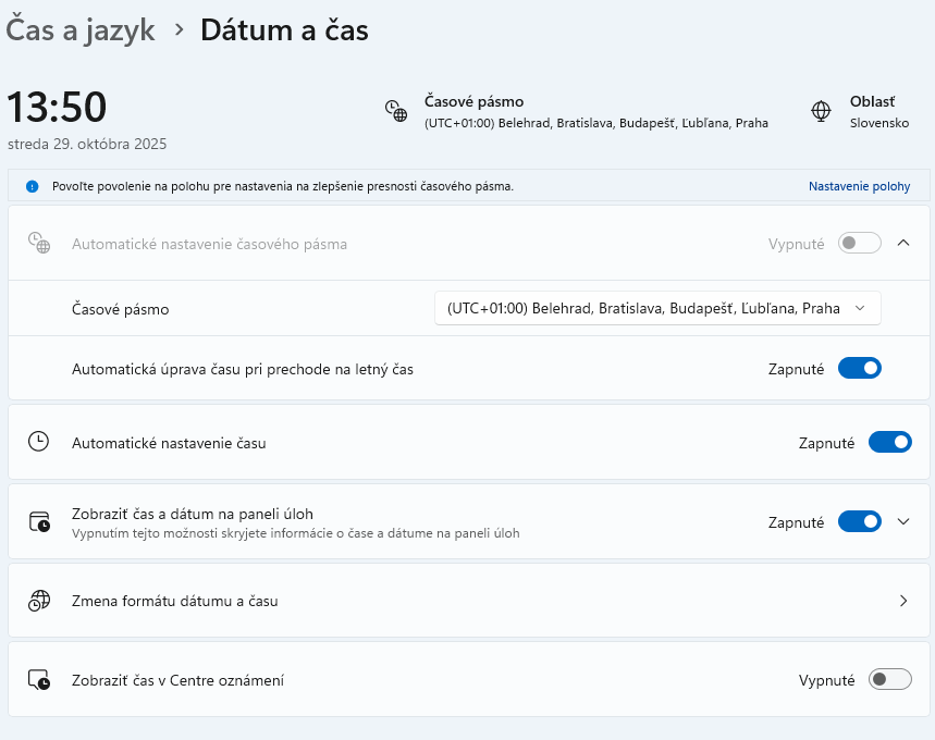 Úplne dole v Centre oznámení je možnosť zobraziť čas aj so sekundami