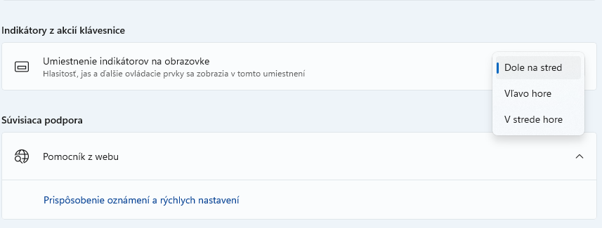 Malou avšak viditeľnou zmenou je možnosť definovať, kde sa budú zobrazovať indikátory hlasitosti alebo napríklad jasu obrazovky. Doteraz sme ako používatelia nemali na výber. Tieto ukazovatele boli umiestnené uprostred obrazovky v spodnej časti.