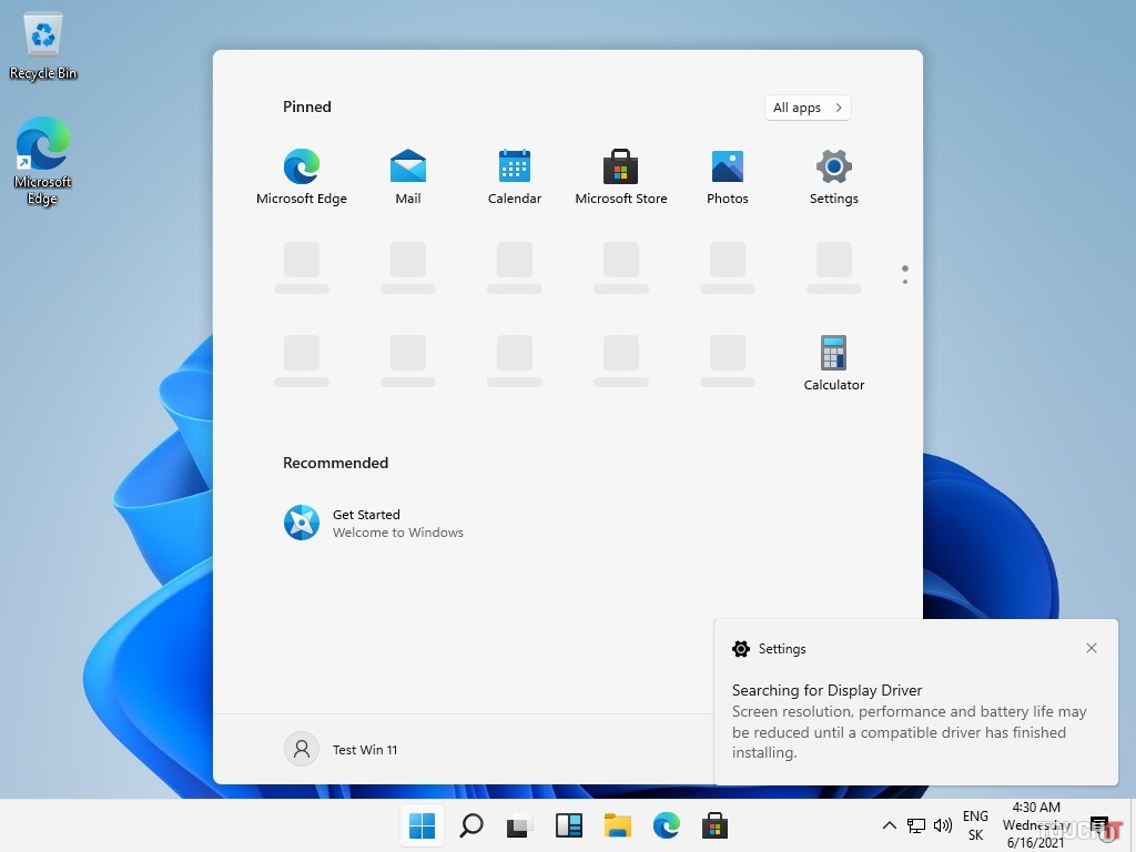 Inštalácia systému z ISO obrazu nezabrala viac ako 5 minút na SSD disku. Celkovo však aj kvôli použitiu off-line účtu. Sprievodca je animovaný a má veľmi pekné prvky. V rámci nastavení sme zvolili základnú konfiguráciu, aby sme videli, aké sú rozdiely vo výkone na slabej zostave. Išlo o počítač s 2 GB RAM, 60 GB SSD diskom a jedným procesorom s dvomi jadrami, hoci reálny procesor má štyri jadrá. Sprievodca nastavením je veľmi podobný tomu, ako pri Windows 10, zbadáte ale novú grafiku. V tomto smere ide o viditeľné zlepšenie dojmu celého systému. Celkové možnosti a to ako na nás systém vplýval, by sme prirovnali k Windows 95 a prechodu na Windows 98 či možno Windows Me. S týmto sme spokojní. Je tu nové číslovanie operačného systému, takže očakávame niečo nové, no v zásade chceme stále svoj Windows poznať. Z nášho pohľadu nejde o tak dramatickú zmenu ako v prípade z prechodu Windows 98 / 2000 na Windows XP. Tam bol vizuál citeľnejší. Keď sa vrátime k inštalácii, tu vás poteší detail a to je zlepšenie vizuálu už v počiatočnom štádiu. Netreba spustiť systém, aby sa prejavila grafika roku 2021 tak, ako to bolo v minulosti. Teda kostrbaté písma, základné farby a všetko graficky prívetivejšie, sa zobrazilo až po vstupe do Windows prípadne po inštalácii už vo forme animovaného štartovacieho loga. Na čo sa vlastne nový systém podobá? Minimálne sa tu začali prejavovať prvky Fluid dizajnu, no ešte stále len v prechodnom stave. Vo svojej podstate si vizuál z veľkej časti prevzal z systému Windows 10X. Podobá sa na Chrome OS, možno trochu na Linux a centrovaním prvkom na Paneli úloh je tu jednoznačne podoba s macOS. Prvky sa dajú zarovnať doľava, tak ako sme boli po všetky generácie Windows zvyknutí. Zarovnanie doprostred môžete mať už aj teraz, stačí použiť doplnok CenterTaskbar, ktorý si stiahnete tu. Slovenčina nie je v tejto verzii dostupná počas inštalácie, dá sa ale nainštalovať cez pridanie jazykového balíka a nastaviť ako predvolený jazyk rozhrania. Stále však bolo takmer všetko v angličtine, teda v jazykovej verzii, v ktorej sme systém inštalovali. Niektoré popisy alebo tlačidlá už lokalizáciu mali, aplikácie zatiaľ zostávali v anglickej mutácii. Čiže napríklad Notepad namiesto Poznámkový blok atď.
