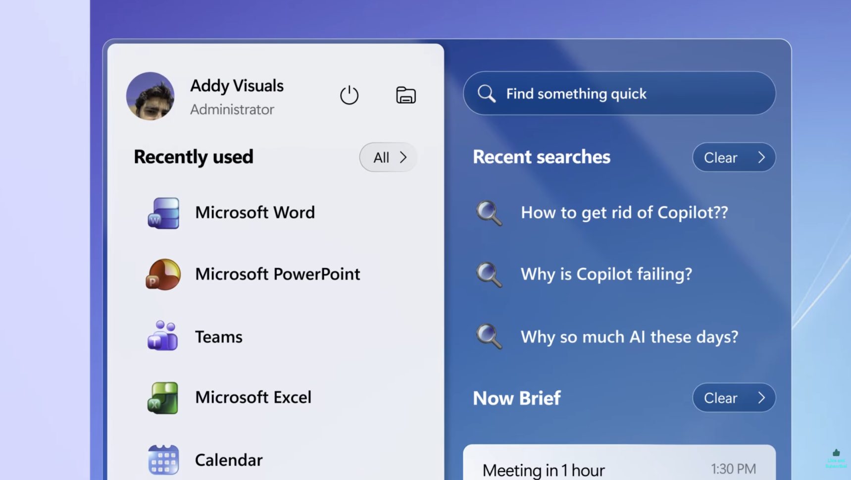 Grafická ukážka edície 2026 zobrazuje skrášlenú ponuku Štart, ktorá má akýsi moderný sklenený efekt. Nechýba ani prepracovanie Copilota na pôvodnú spinku ako lokálneho AI agenta.