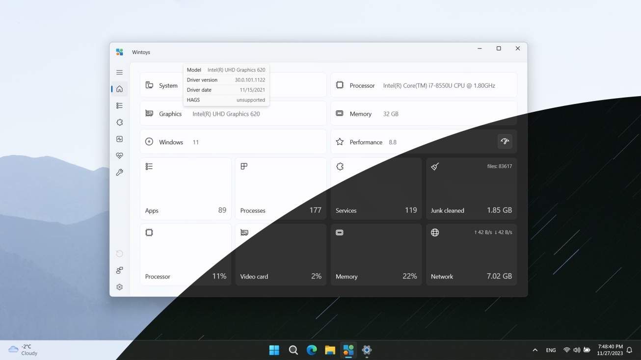 K dispozícii máte veľmi jednoduchú utilitu s názvom Wintoys. Poskytne prehľad o stave systému a umožní ďalšie činnosti dostupné vo väčšine prípadov aj z hlbokej štruktúry ovládacích panelov alebo nastavení. Aplikácia sa dá stiahnuť priamo z Microsoft Store a je menšia ako 1 MB.