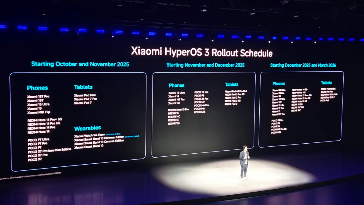 Posledná vlna bude prebiehať od decembra 2025 a ukončí sa v marci 2026. Do konca marca 2026 by mali byť na globálnom trhu aktualizované všetky kompatibilné zariadenia, pričom niektoré modely pravdepodobne dostanú HyperOS 3 aj neskôr. V tom prípade však pôjde skôr o zariadenia, ktoré aktuálne nie sú na pláne aktualizácií a k novej verzii systému sa dostanú len v podobe bonusovej aktualizácie.