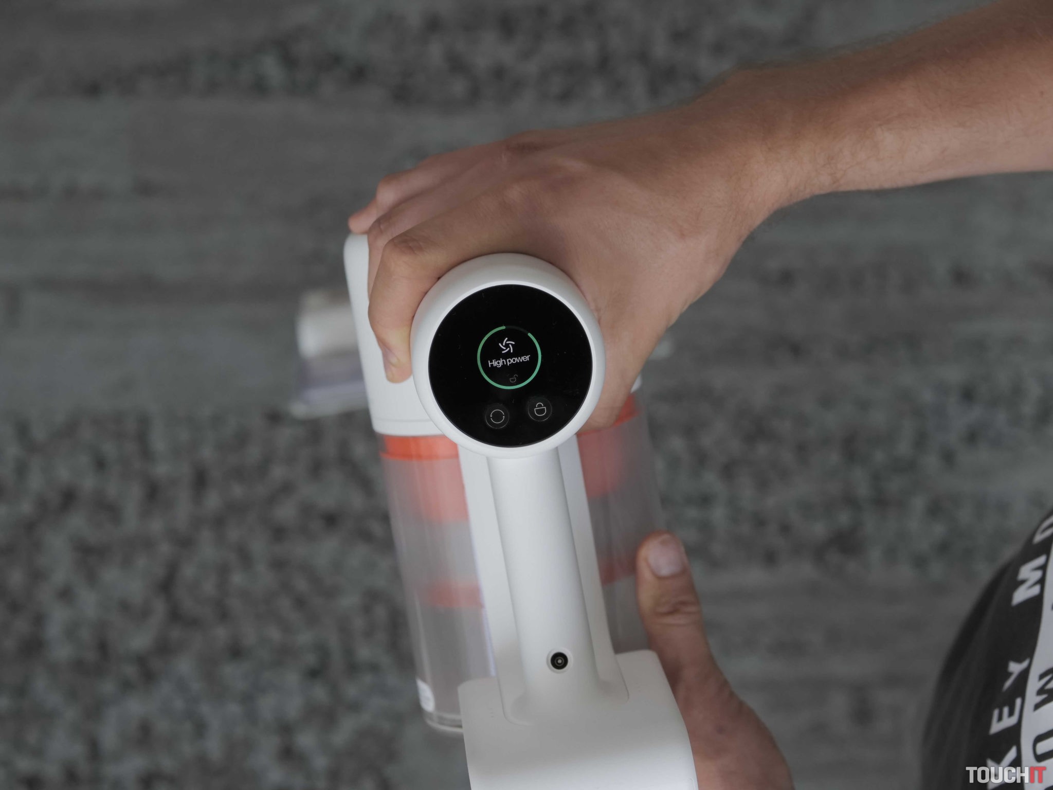 Hlavná jednotka má držadlo pištolového tvaru, ktoré obsahuje centrálne zapínacie tlačidlo. Súčasťou jednotky je motor so sacím výkonom 150 wattov, filtračný modul so zbernou nádobou s objemom 600 ml a v spodnej časti je vysúvacia batéria. Vysávač disponuje až 5 stupňovou filtráciou. Nádobu na prach dokážete ľahko vyprázdniť, stlačením tlačidla v jej spodnej časti. V prednej časti hlavnej jednotky nájdete ešte TFT displej, ktorý informuje o zostatkovej kapacite batérie, čistiacom režime a prípadne o iných stavoch vysávača – výmena filtra a podobne.