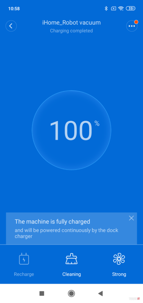 Keďže má samotný vysávač iba základné ovládacie prvky, tak je potrebná aj aplikácia, kde nájdete ten zvyšok, ktorý je veľmi dôležitý. Aplikácia si vysávač po jeho zapnutí vyhľadá automaticky, takže ho stačí iba pridať a používať. Po kliknutí na ikonu vysávača môžete spustiť vysávanie alebo odoslať príkaz na návrat k nabíjačke. Odozva ovládania prostredníctvom Wi-Fi je prijateľná. Ak sa chcete dostať do pokročilých nastavení, treba kliknúť na „more operations“, teda viac možností. Ihneď sa dostanete na základnú plochu tohoto pomocníka, kde vidíte stav nabitia, či vysáva alebo sa nabíja, aký čas aa nabíja, a tiež sa tu nastavuje výkon vysávača!