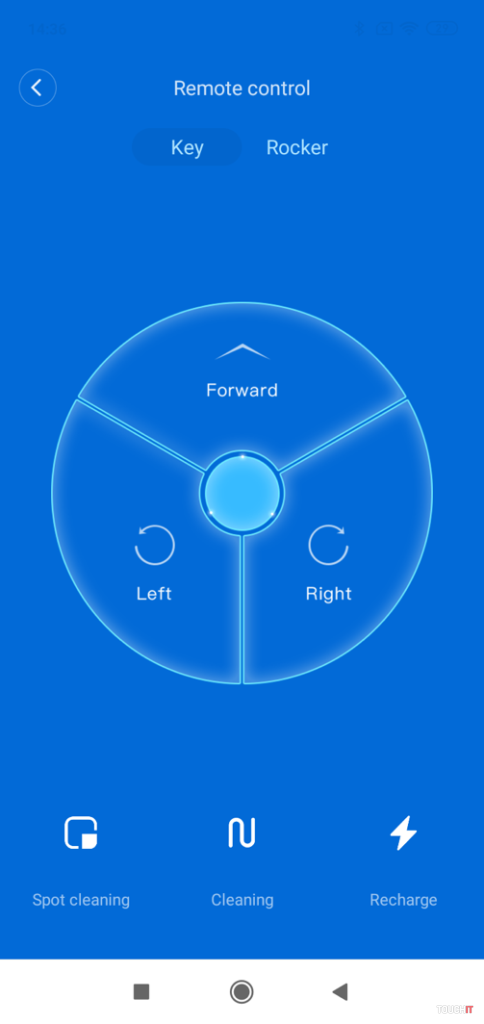 Aplikácia ponúka aj možnosť „manuálneho“ ovládania vysávača. Môžete ho tak nasmerovať kam potrebujete (napr. rozsypaná múka v kuchyni) a poslať späť na nabíjačku. Ovládanie je možné dvomi spôsobmi – tlačidlá alebo imitácia joysticku. Nevýhodou je iba dlhšia odozva – tá je z pohľadu bežných akcií bezproblémová, ale z pohľadu priameho ovládania to nie je ideálne. Treba však uznať, že za pomerne nízku cenu dostanete výborného pomocníka, ktorý sa postará o pravidelné čistenie vašej domácnosti. V balení nájdete vysávač, nabíjaciu stanicu, napájací kábel, kefu a potrebné diely.