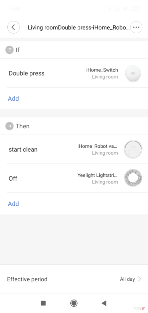 Na záver trošku automatizácie, ktorú máme veľmi radi. Vysávač sme zapojili do smarthome systému preto, aby sme si veci uľahčili a spúšťali viacero akcií súčasne. Najčastejšie využívame vysávač v spojení s bezdrôtovým MI tlačidlom, ktoré máme na chodbe. Keď odchádzame z domu, tak naňho dvakrát klikneme, pričom sa vypnú všetky svetlá a spustí sa vysávač. Toto môže byť ešte viac automatizované tak, že po zistení vašej neprítomnosti systém zaháji upratovanie – vysávanie. Super, čo poviete? A nezabudnite, vysávač máte pod dohľadom aj mimo domu, resp. mimo domácej Wi-Fi siete!
