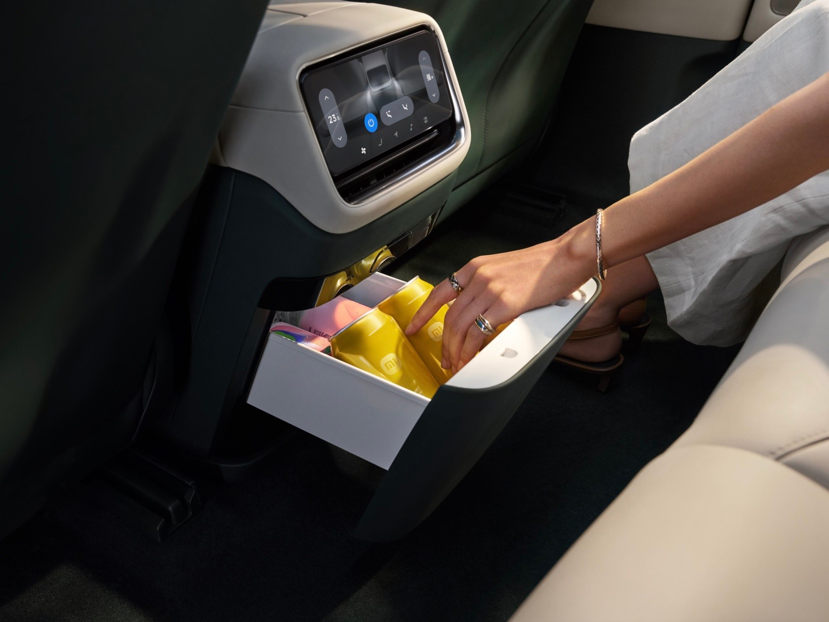 Pod panelom stredovej konzoly sa nachádzajú dve 80 W bezdrôtové nabíjacie podložky so skrytým vetraním, ktoré zabezpečujú rýchle nabíjanie telefónov bez prehrievania. Zrkadlá na slnečných clonách na strane vodiča aj spolujazdca ponúkajú trojstupňové nastavenie jasu a farby pre jasnejší výhľad.