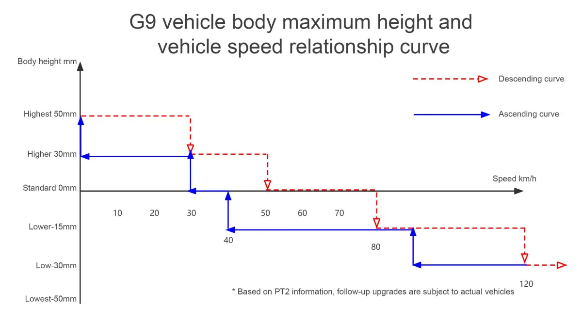 Graf závislosti výšky podvozku od rýchlosti XPENG G9