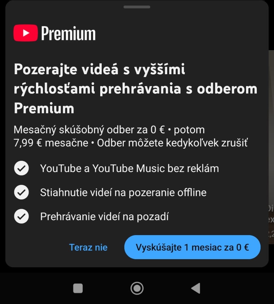 YouTube Premium umožňuje 4-krát rýchlejšie prehrávanie obsahu, bez zaplatenia predplatného si YouTube videá prehráte pomalšie.