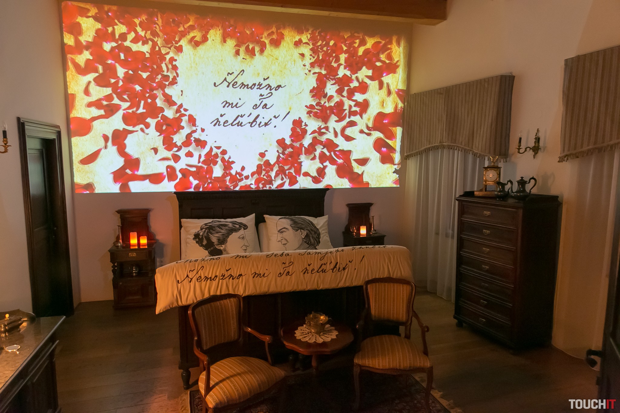 Do skutočného príbehu lásky Maríny a Sládkoviča vtiahnu návštevníkov Hovoriace obrazy ako z Harry Pottera. Projektory Epson EB-585W vytvárajú ilúziu starobylých olejomalieb. Štyri portréty v historických drevených rámoch sú portréty Maríny, Sládkoviča, Maríninej mamy a Maríninho manžela Gerzsa. Počas prehliadky olejomaľby zrazu nečakane ožijú a začnú medzi sebou komunikovať. Touto netradičnou high-tech formou divákom rozpovedia, ako to v skutočnosti bolo v jednom z najslávnejších príbehov lásky.