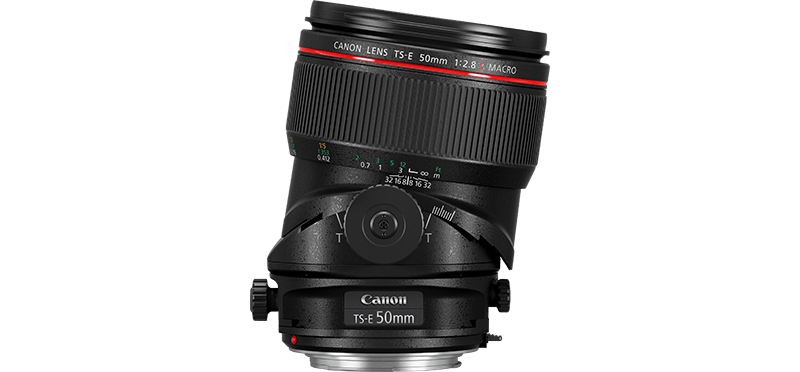 Všetky spomínané vlastnosti spojte dohromady a nastavte im 50 mm ohniskovú vzdialenosť. Dostanete objektív, ktorý nesie nápis Canon a vpredu červený prúžok znamenajúci príslušnosť k medzi elitné objektívy s prívlastkom L. Naklápať ho je možné o 8,5° a posúvať o 12 milimetrov od základnej polohy. Mechanizmy naklápania a posúvania sú nezávisle nastaviteľné v oboch smeroch, sú uzamknuteľné a vďaka veľkým upevňovacím skrutkám sa veľmi dobre používajú.