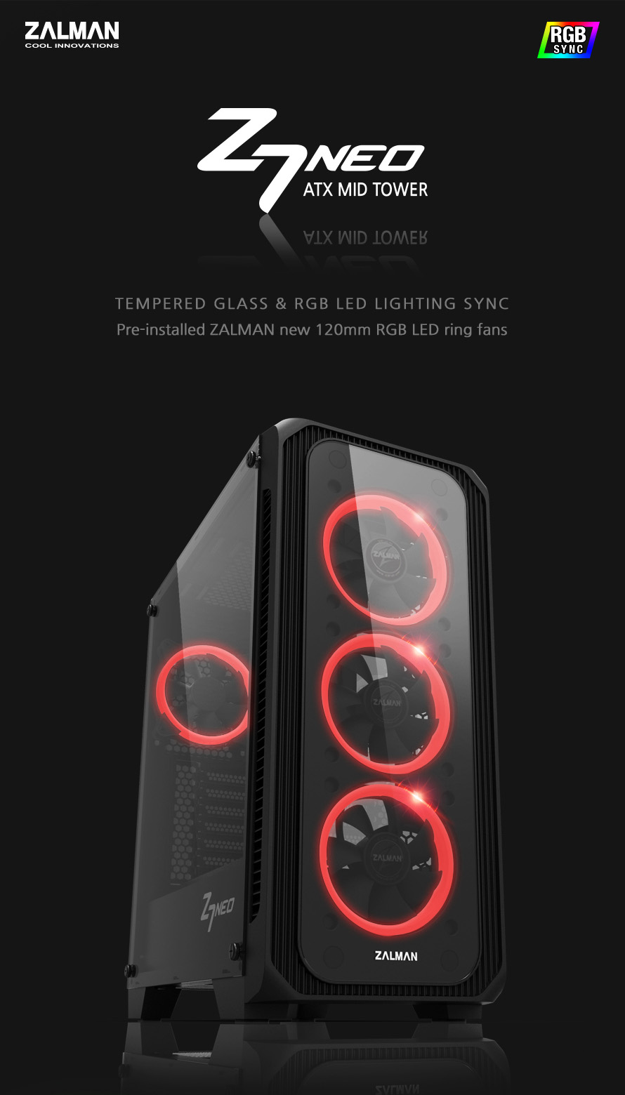 Nová PC skriňa formátu ATX Mid-Tower Zalman Z7 Neo podporuje dosky formátu Mini-ITX, mATX, ale taktiež ATX. Predná časť skrine je osadená tromi 120mm ventilátormi. Ďalší 120mm ventilátor je umiestnený v zadnej časti skrine. Ďalšie dva ventilátory (120 alebo 140 mm) je možné pridať do horného panelu. Maximálna výška vhodného CPU chladiča je 165 mm, maximálna dĺžka grafickej karty potom 355 mm. V spodnej časti skrine je vyčlenený priestor pro zdroj maximálnej dĺžky do 180 mm. V prípade voľby vodného chladenia je vyčlenený priestor pre radiátory chladenia od 120 mm do 360 mm. Skriňa má taktiež veľký odnímateľný magnetický prachový filter v hornej časti.