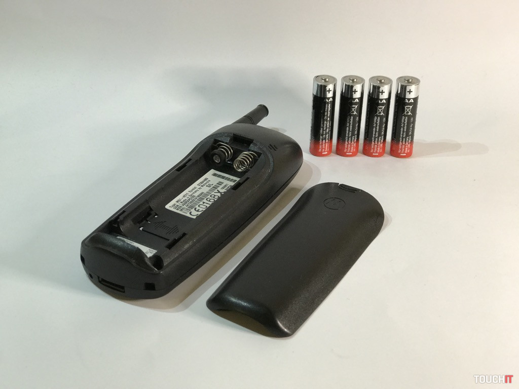 Jeho výhodou je, že okrem dodávanej batérie je možné telefón napájať štyrmi klasickými batériami – typ AA. Čiže, situácia – máte takmer vybitý telefón a potrebujete súrne volať. Riešenie – skočím do obchodu, kúpim baterky, nahádžem do telefónu a volám! Šikovné, čo poviete? Takéto riešenie bolo viditeľné u viacerých telefónov v tejto dobe.