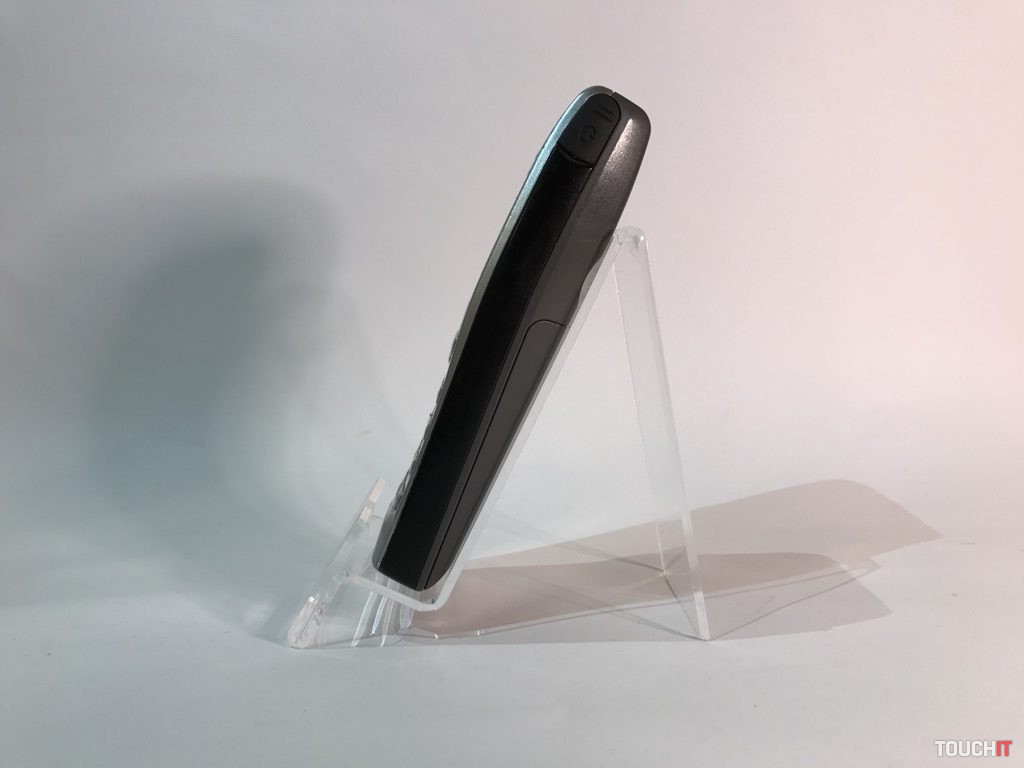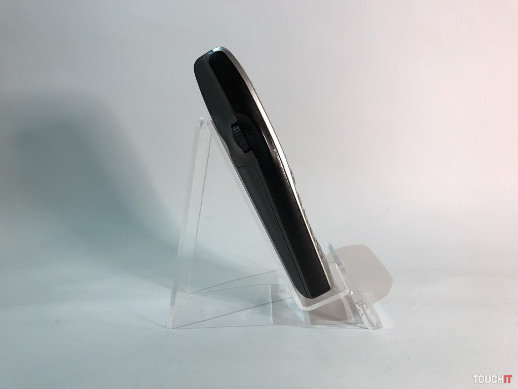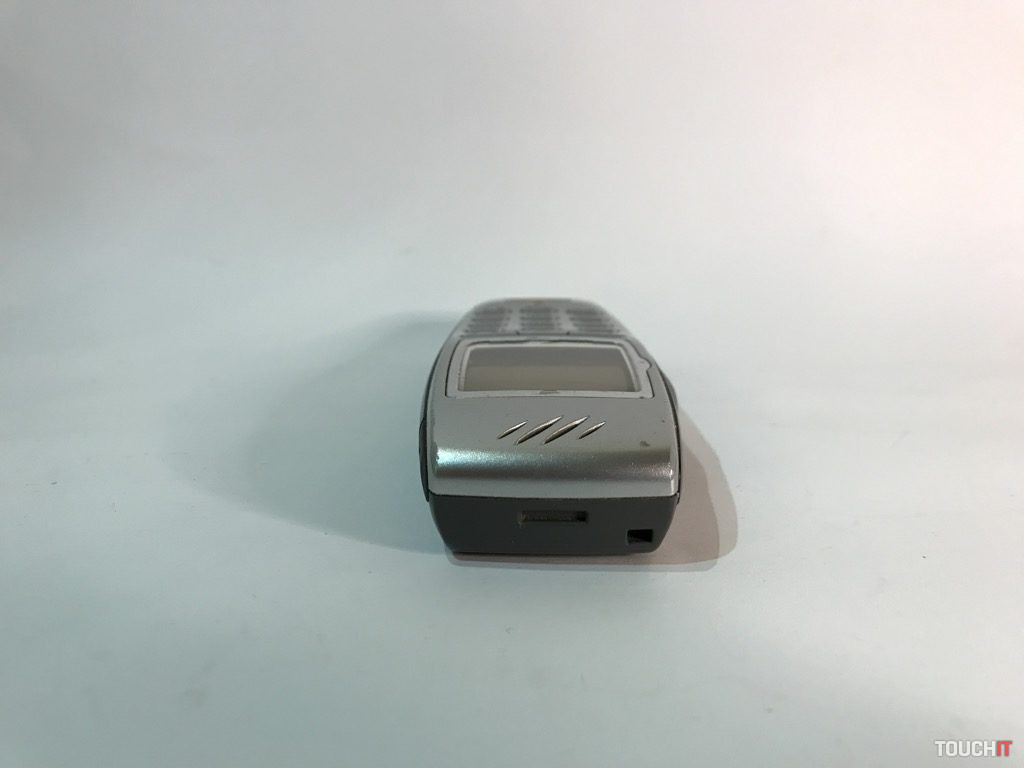 V pravej strane nie je nič, okrem krytého výstupu pre handsfree sadu. Na moje počudovanie, tá krytka je stále na svojom mieste a nemá tendenciu odtrhnúť sa. S týmto malo množstvo, aj modernejších, telefónov problém. V ľavej strane je ukryté tajomstvo a celá unikátnosť tohoto telefónu. Je to Jog-Dial – ovládacie koliesko telefónu v kombinácii s tlačidlom. Povieme si o ňom nižšie. Vrchná časť telefónu je funkčne prázdna, ale nechýba otvor pre pútko, resp. obľúbenú šnúrku na krk. V spodnej časti je konektor pripojenia k PC, ktorý je kombinovaný s nabíjaním. My nabíjačku na tento model, zatiaľ, nemáme. V zadnej časti sa nachádza, ako inak, kryt batérie, otvor hlasného reproduktoru a konektor pre externú anténu. Ten je krytý gumenou krytkou.