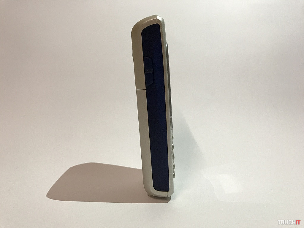 Pokračujeme dizajnom T230. Kompaktnosť v rozmeroch 101 × 44 × 19 mm a hmotnosťou 79 gramov hovorí za všetko. Do ruky sadol perfektne. Konštrukcia je plastová a ak sa nemýlim, tak bol dostupný v dvoch farebných prevedeniach. Šedá a oceľovo modrá (zaujímavá farba). My máme farbu šedú, pričom boky zariadenia sú modré. Dizajn je vskutku podarený a mne sa (subjektívne) páči. Konštrukčné spracovanie je, ako u väčšiny starých zariadení, výborné. Dodnes na ňom nič nevŕzga, nič nie je polámané a vyzerá ako nový.