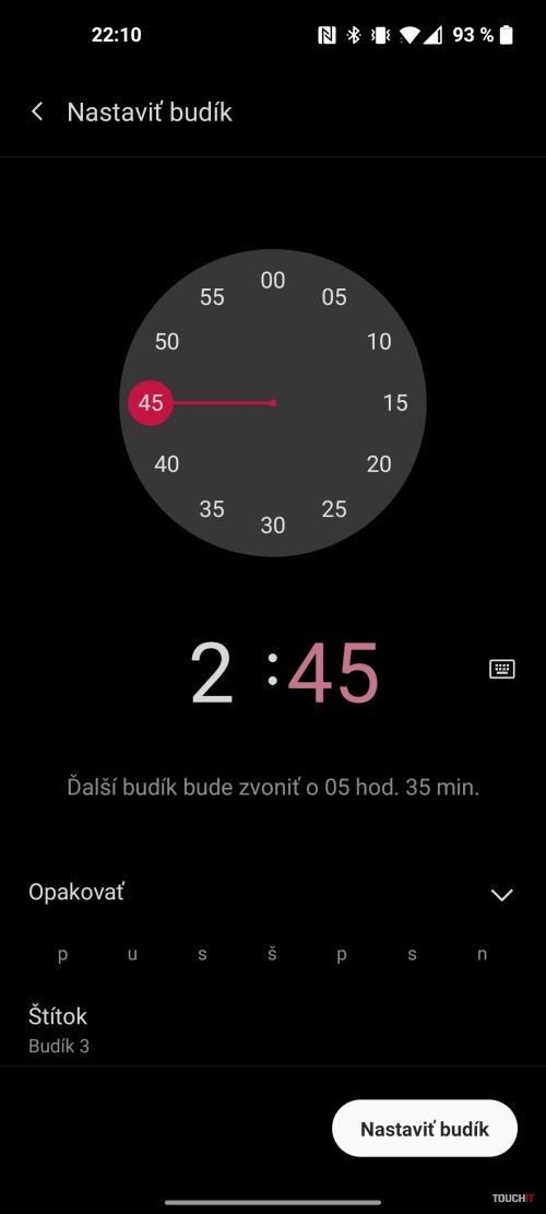 Zmena času zo zimného na letný priniesla so sebou neočakávanú chybu – funkcia budík nefungovala korektne v prípade niektorých smartfónov. Zimný čas sa menil na letný dňa 28. 3. 2021, v čase 2:00 sa hodiny okamžite posunuli na 3:00. Smartfóny si však toto správanie zapamätali a aplikovali ho aj v prípade, že ste si chceli nastaviť budík na čas v rozmedzí 2:00 až 3:00 na dnešný deň (29. 3. 2021). Viaceré smartfóny nám totiž pri nastavení budíka na čas 2:45 automaticky zmenili budík na 3:45, zriedkavo na 1:45. Toto správanie sme si všimli v prípade telefónov značiek Huawei, OnePlus či Realme. Smartfóny značiek Samsung, Sony a Apple v rámci nášho testovania tento problém nemali a budík nastavili korektne. Môžeme polemizovať, nakoľko je táto chybička operačného systému telefónov problémom. Na tento problém nás však upozornili naši čitatelia a ako by vám povedal aj náš Ondrej – keď vstáva do Telerána, tento čas budíka využíva. Faktom však je, že aktuálne už funguje nastavenie budíka korektne a bez problémov na všetkých telefónoch.Nastavenie budíka v telefóne OnePlus. Všimnite si, že už pri zvolení času 02:45 nám telefón oznámil, že sa budík spustí o 5 hodín, čo zodpovedá času 03:45. Obrázky si môžete zväčšiť kliknutím na ne