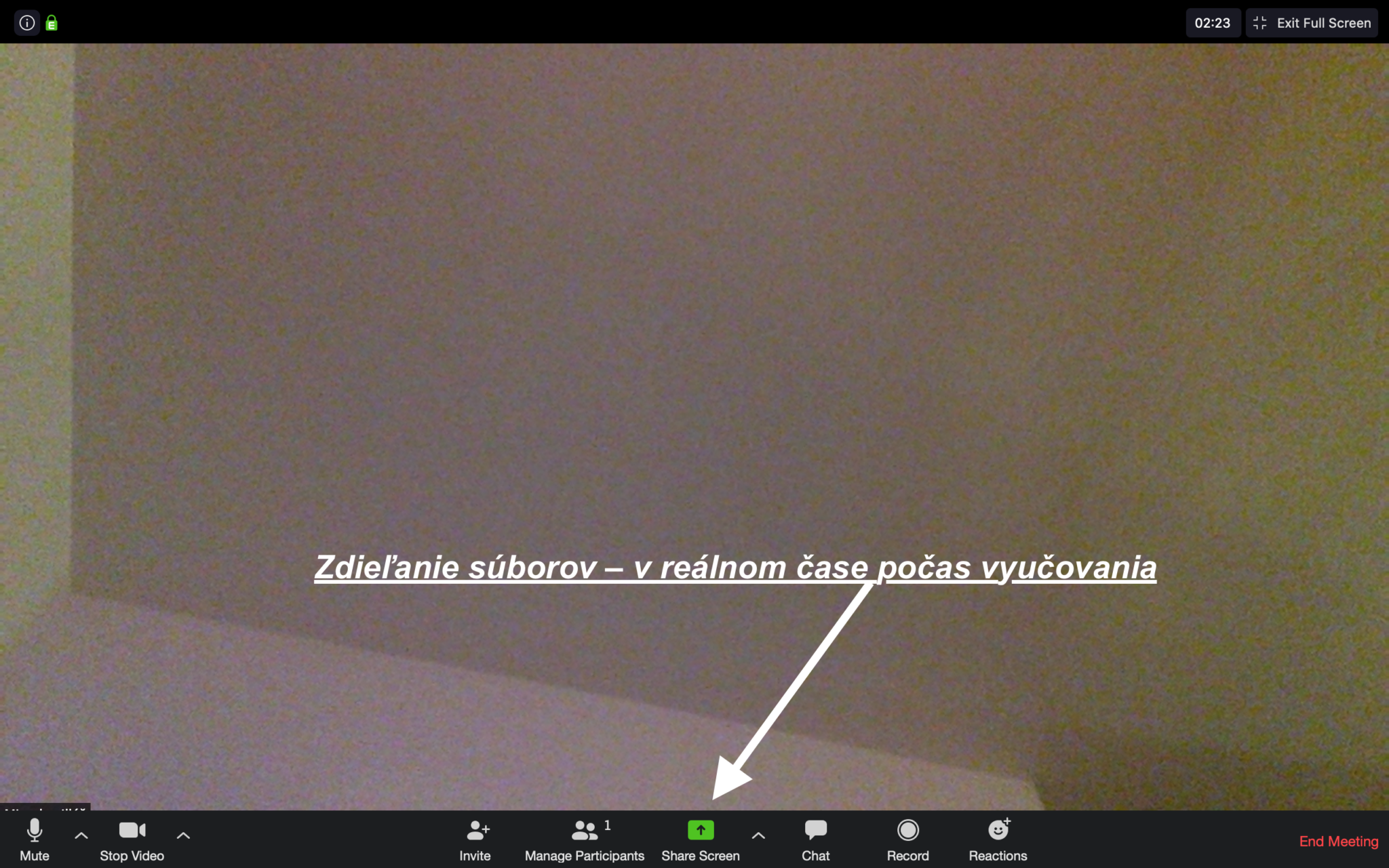 Vy im takto môžete v priamom prenose ukazovať, čo majú robiť, vysvetľovať im, čo je na obrázkoch a pod. Týmto spôsobom môžete zdieľať akýkoľvek súbor, spustiť video a pod. Ak kliknete na zdieľanie webového prehliadača, tak môžete navštíviť akúkoľvek webovú stránku, ktorú uvidia aj žiaci a ukázať im všetko čo potrebujete. Jednoduché, praktické a rýchle. Dostupné sú aj rôzne anotácie (úpravy), takže viete priamo na obrazovku zadávať text, kresliť, označovať a pod. V neposlednom rade viete zdieľať aj čistú bielu tabuľu, kde zadávate text, kreslíte a pod. Takto sa dá vyučovať akýkoľvek predmet. Ak potrebujete využiť textovú komunikáciu, tak kliknite na položku „chat“ a môžete písať správy celej skupine alebo jednotlivcom. Nad textovým polom je položka „To:“, na ktorú keď kliknete, tak sa vám zobrazia jednotlivé mená – kliknutím na niektoré z nich píšete danej osobe alebo zvoľte „everyone“ a píšte verejne, aby to videli všetci. Kliknutím na položku „manage participants“ vidíte, kto všetko je pripojený, a tiež môžete ako pedagóg premenovať jednotlivých žiakov (ak by tam mali popísané hlúposti), prípadne ich môžete stlmiť (vypnúť zvuk) alebo vypnúť video prenos – všetko jednotlivo. Viac toho na začiatok potrebovať nebudete, niekto si na to zvykne hneď, inému to potrvá dlhšie, no veríme, že si túto jednoduchú platformu rýchlo obľúbite – rovnako aj vaši žiaci. Na záver dodajme, že v bezplatnej verzii môže trvať jeden video hovor maximálne 40 minút, čo je plne dostačujúce. Po tomto čase hovor vypnete, dáte si napr. prestávku a opätovne začnete ďalšiu 40 minútovú hodinu. Opakovať ich môžete koľko budete chcieť. V nastaveniach sa dá zapnúť aj to, aby ste videli čas daného hovoru – podľa toho sa dá pekne orientovať.Podrobný návod pre žiakov/rodičov (všetky platformy). Ako sa pripojím k triede prostredníctvom video hovoru?