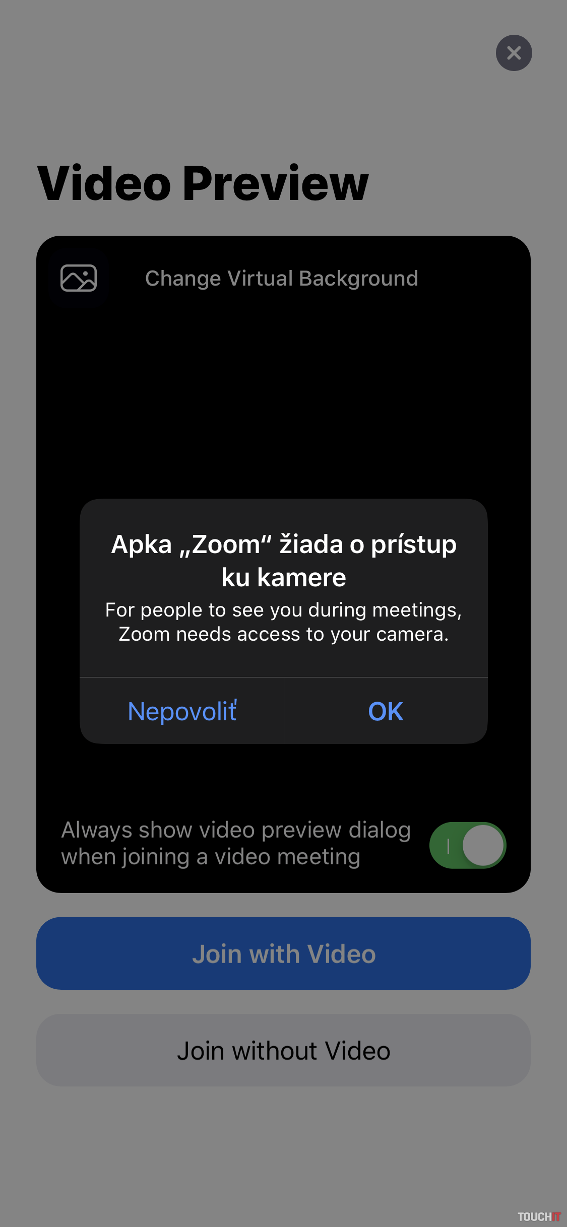 - V tomto kroku by ste sa už mali vidieť v náhľade (video preview) – kliknite na položku – Join with Video (odsúhlaste položku nahrávanie zvuku) a ste v triede 🙂 HOTOVO. Teraz môžete komunikovať s učiteľom/spolužiakmi a vidieť všetko, čo s vami učiteľ/ka zdieľa. (Všetky povolenia odsúhlasíte iba raz – počas prvého spustenia, následne ich aplikácia vyžadovať nebude)